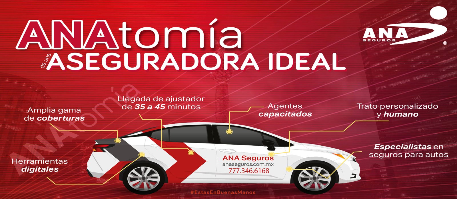 En ANA Seguros cuidamos lo que más valoras con planes de auto, hogar, salud y vida diseñados a tu medida. Ofrecemos coberturas flexibles y un servicio cercano que te respalda cuando más lo necesitas, para que vivas con la tranquilidad de estar protegido siempre.
